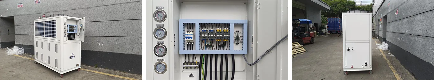 A 20 tonnás VFD léghűtéses inverteres vízhűtő alternatívát kínál a folyamathűtési alkalmazásokhoz. Változtatható sebességű kompresszorokat használnak fejlett PLC-kkel párosítva. A szabályozó folyamatosan figyeli a hőterhelést, és beállítja a kompresszor fordulatszámát a csúcshatásfok és a hőmérséklet szabályozása érdekében.