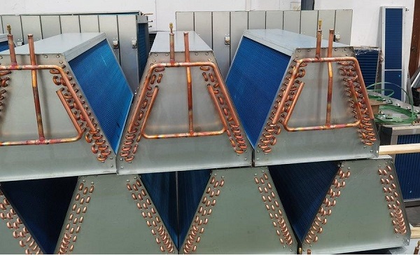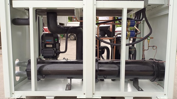 A léghűtéses hűtő kondenzátoránál a ventilátor viszonylag hideg külső levegőt fúj át a kondenzátor hőleadó bordáin, ahol a légáramlás hőt cserél a bordák belsejében lévő magas hőmérsékletű gáznemű hűtőközeggel, elszállítva a hűtőközeg hőjét; A vízhűtéses hűtő kondenzátoránál azonban a víz és a keringető hűtőközeg között a hőcsere megtörténik a szállító hűtőközeg között. hűtőközeg hő, amelyhez vízhűtőtoronyra van szükség.